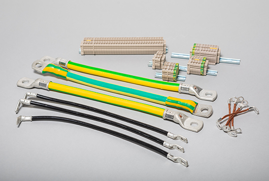 We manufacture earthing cables by cutting them in the right sizes, attaching cable shoes, and covering the cable jacket if needed. We also assemble terminal blocks according to the customer’s requests.